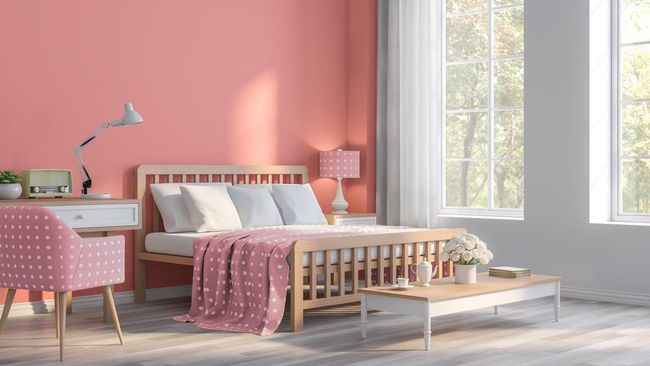 Menggunakan warna pink pada dinding maupun langit-langit dapat memberikan kesan yang menenangkan. Rasanya seperti mendapatkan pelukan besar.