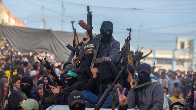 Jakarta - Pejuang Hamas merayakan gencatan senjata di jalan-jalan Gaza, bergabung dengan warga dalam momen harapan dan solidaritas di tengah konflik yang berkepanjangan.