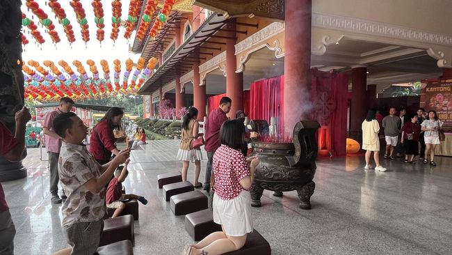 "Tiap tahun pasti ajak keluarga besar saat Imlek ke vihara ini untuk ibadah ya. Kita suka suasananya dan dekat juga dari rumah," kata Lina.