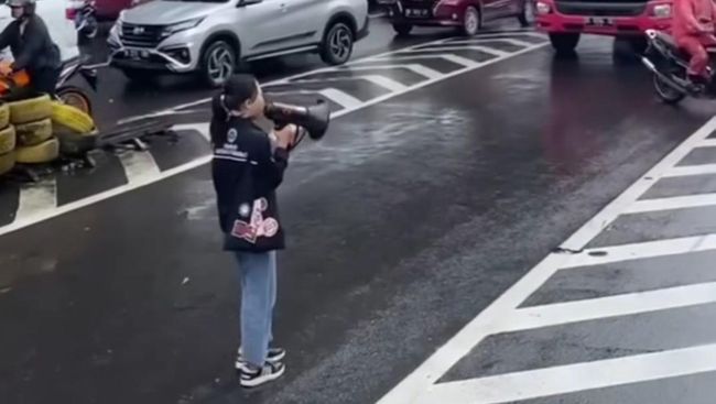 Sementara dalam video yang beredar di media sosial, terlihat Ainun menggelar aksi demonstrasi di Jalan Pettarani, Makassar. Mahasiswi tersebut tampak mengenakan baju hitam sambil memegang pengeras suara atau toa.
