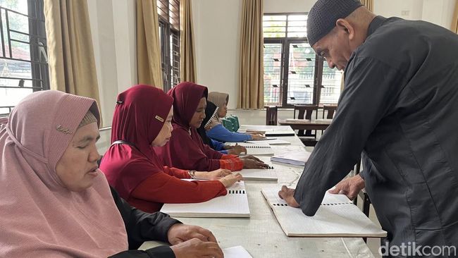 Jemari Refnita (45) begitu lihai saat menyentuh ayat demi ayat timbul pada Al-Quran braile pagi ini. Sesekali ia mengulang bacaannya saat sang guru mengoreksi bacaannya.