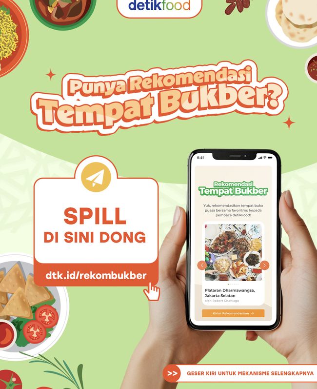 Lewat program 'Rekomendasi Tempat Bukber' kalian bisa mengirimkan info tempat makan terbaik untuk buka puasa di kanal detikFood. Hadiah Rp 1 juta menanti. Simak syarat dan mekanismenya.