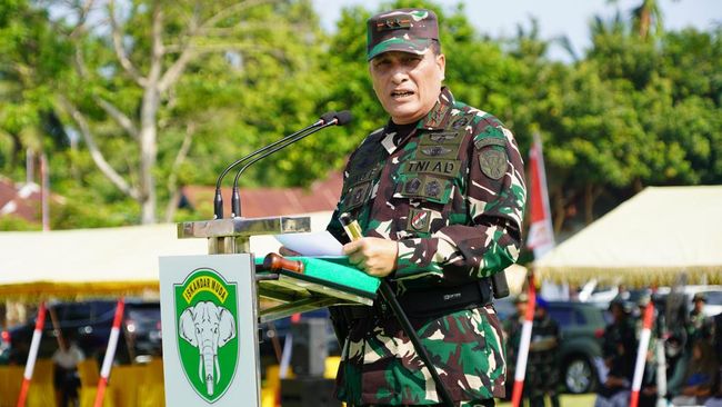 Pangdam Iskandar Muda Mayjen TNI Niko Fahrizal menerima senjata tersebut saat menutup kegiatan TNI Manunggal Membangun Desa (TMMD) ke-123 Kodim 0111/Bireun Tahun Anggaran 2025, Kamis (20/3/2025). Penutupan kegiatan itu berlangsung di Lapangan Bola Kaki Desa Meunasah Pulo, Kecamatan Peudada, Bireuen.