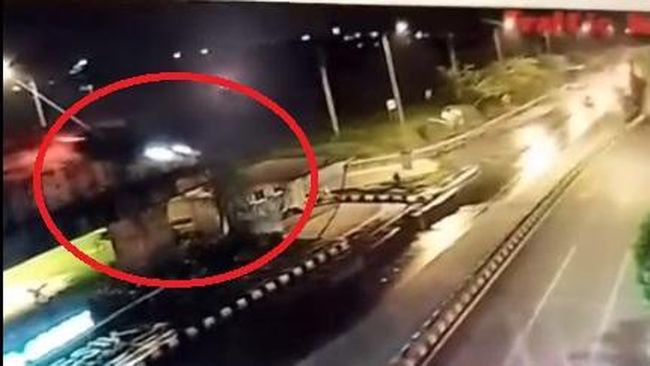 Jakarta - Sebuah mobil BMW terjun dari ujung Tol Krian-Gresik. Detik-detik mobil tersebut melayang dari ujung tol dan jatuh ke jalan raya terekam CCTV.