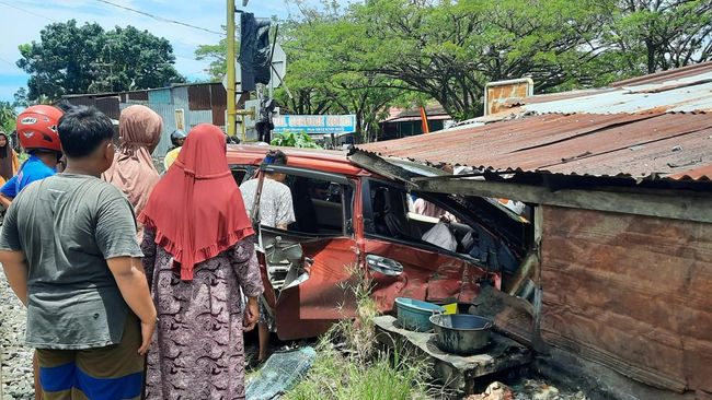 Pantauan di lokasi, mobil bermerek Honda Mobilio dengan nomor plat BM 1517 MT terlihat menghantam rumah warga. Mobil nahas itu terseret sekitar 10 meter, setelah tertabrak kereta. Kendaraan rusak pada bagian samping dekat sopir dan kaca belakang pecah.