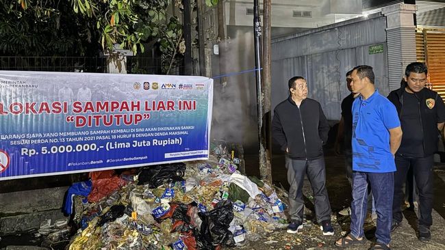 Terbaru, polisi menangkap tujuh orang terkait penyebab tumpukan sampah. Tujuh orang itu mulai dari pelaku buang sampah hingga pelaku pungutan liar yang mengaku dari Dinas LHK Pekanbaru.
