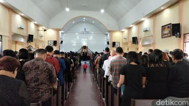 Pantauan detikSumut di Huria Kristen Batak Protestan (HKBP) Tegal Rejo Jalan Sehati Medan, ratusan jemaat memadati gereja sejak pukul 07.45 WIB. Ibadah dimulai usai lonceng gereja berbunyi.