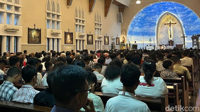 Pantauan detikSumut, Jumat (25/4/2025), tampak misa dimulai sekira pukul 18.00 WIB. Jemaat gereja yang hadir tampak ramai. Selain di gedung utama, bagian gedung serbaguna gereja juga tampak dipadati jemaat.