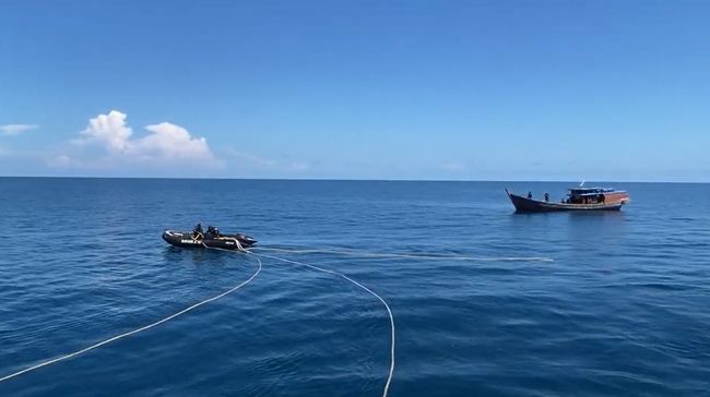 "Kapal terlihat mengapung dalam kondisi mencurigakan. Kami segera memerintahkan tim Visit, Board, Search, and Seizure (VBSS) untuk melakukan pemeriksaan lebih lanjut," ujarnya.
