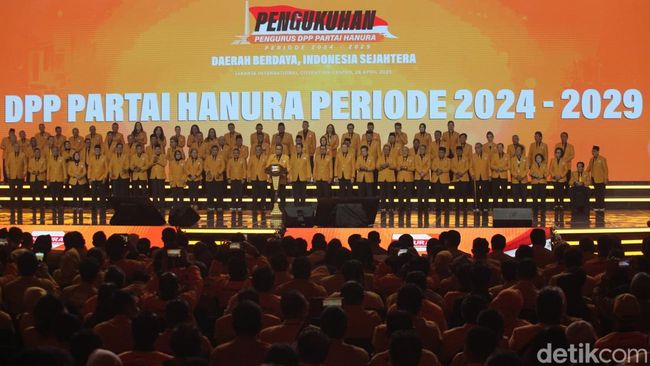 Pelantikan pengurus DPP Hanura ini digelar di Jakarta Convention Center, Sabtu (26/4/2025) malam. Rangkaian penyerahan pataka atau bendera partai dari Ketua Dewan Penasihat Irjen (Purn) Marwan Paris kepada OSO juga dilakukan pada acara ini.