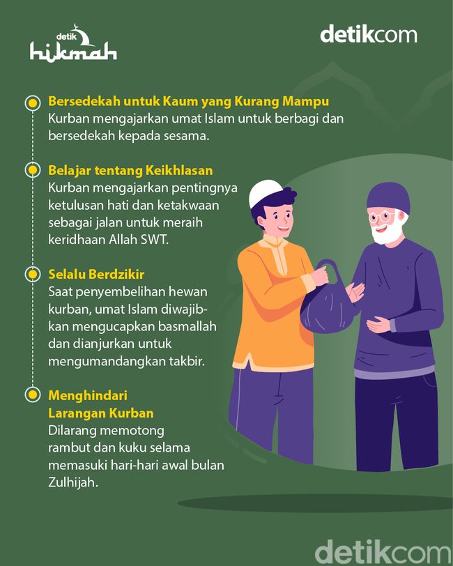 Infografis Pelajaran Dalam Ibadah Kurban Tim detikHikmah - detikSumut Sabtu, 03 Mei 2025 05:02 WIB BAGIKAN Komentar Jakarta - Ada hikmah dan pelajaran yang dapat diambil dalam ibadah kurban saat Idul Adha. Berikut penjelasannya. Simak Video "Filosofi Tradisi Penyembelihan Kerbau di Kudus" (nkm/nkm) ibadah kurban nilai-nilai agama makna kurban hikmah kurban pelajaran idul adha pengorbanan tradisi idul adha spiritualitas amal sosial BAGIKAN Komentar