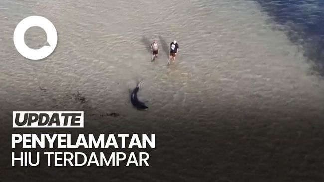 Jakarta - Seekor hiu putih besar terdampar di pesisir pantai Ardrossan, Australia. Hiu itu lalu diselamatkan oleh seorang ayah dan anak yang tengah mencari kepiting.