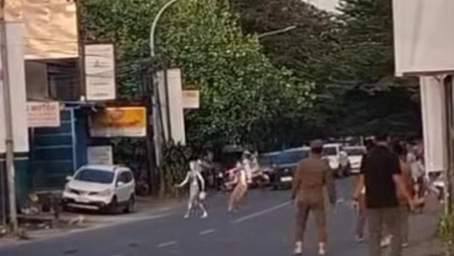 Detik-detik Sekelompok Manusia Silver Serang Petugas Satpol PP di Makassar
