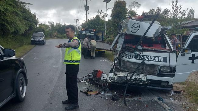 "Telah terjadi kecelakaan lalu lintas dimana 1 unit mobil jenazah yang dikemudikan oleh Edi dengan membawa 5 orang penumpang," kata AKP Manto Pandiangan, Jumat (16/5/2025).