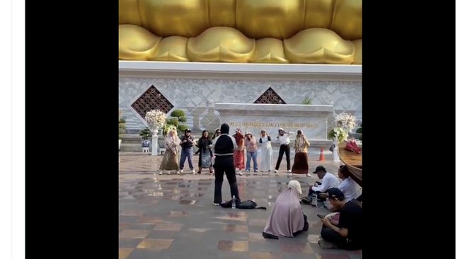 Aksi sekelompok turis berjoget di area kuil Wat Paknam Bhasicharoen dikecam netizen Thailand. Video sejumlah emak-emak yang disebut berasal dari Indonesia itu beredar di media sosial pada Senin (2/6/2025).