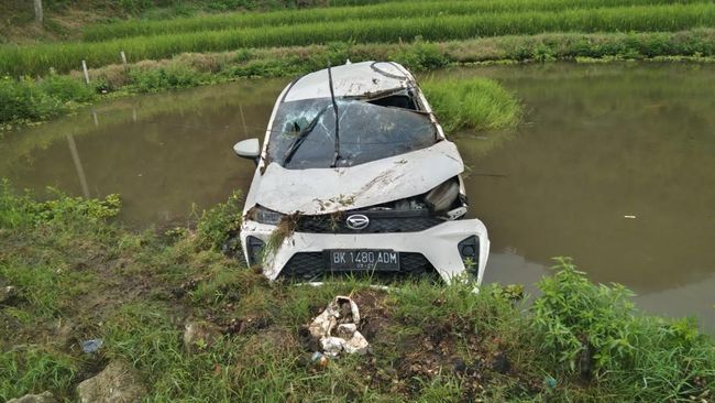 "Mobil mengalami ban tergelincir dan tidak terkendali hingga terbalik dan masuk ke sawah," kata RE Sitohang, Selasa (10/6/2025).
