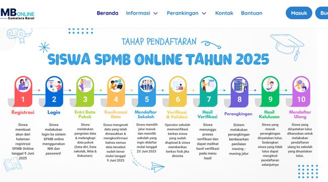 Berdasarkan informasi resmi dari Disdik Sumbar, pendaftaran SPMB Sumbar 2025 akan dimulai pada 23 Juni 2025. Pastikan detikers mencatat tanggal penting ini agar tidak ketinggalan kesempatan.