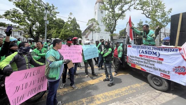 Berdasarkan pantauan detikSumut, Senin (23/6/2025), para ojol berdemo dengan membawa spanduk bertuliskan "Jangan Jadikan Kami Buda Aplikator", "Jangan Korbankan Kesejahteraan Driver demi Kepentingan Perusahaan", dan lainnya.
