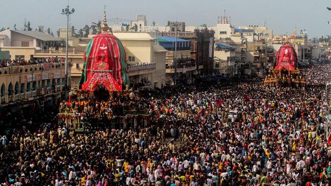 Jakarta - Tiga orang tewas dan enam lainnya luka-luka akibat berdesak-desakan di festival tahunan Rath Yatra India, Minggu (29/6). Otoritas setempat menyatakan bahwa jumlah umat yang hadir jauh lebih besar dibandingkan tahun sebelumnya.