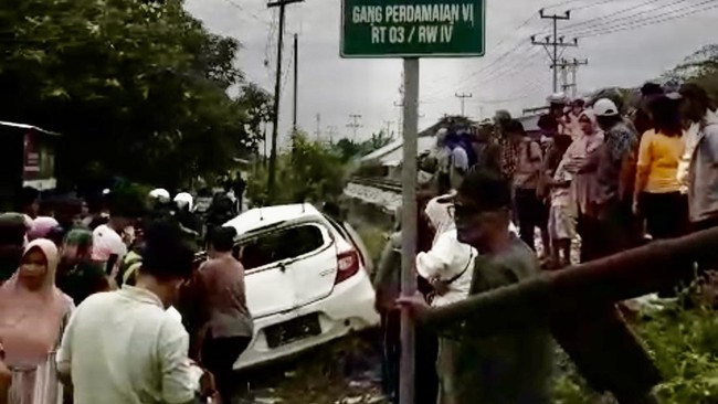 "Mobil datang dari arah Jati Parak Salai hendak melintasi rel kereta api menuju jalan raya jati. Sampai di perlintasan kereta api, mobil tertabrak oleh kereta Api jurusan bandara dari Arah Simpang Aru menuju BIM," katanya.