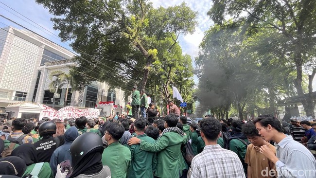 "Kita bingung siapa yang benar-benar yang mewakili di sana, apakah rakyat atau partai pengusung mereka," teriak para massa aksi.