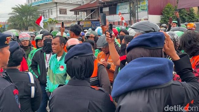 Puluhan pengemudi ojek online (ojol) menggelar demonstrasi ke Brimob Polda Sumut di Jalan Bhayangkara, Kecamatan Medan Tembung. Mereka meneriaki para personel Brimob 'pembunuh'.