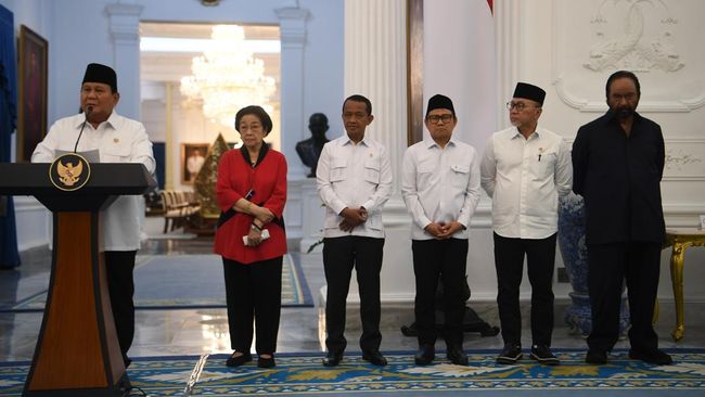 Dalam konferensi pers itu, sejumlah tokoh parpol hadir mendampingi Presiden Prabowo, antara lain: