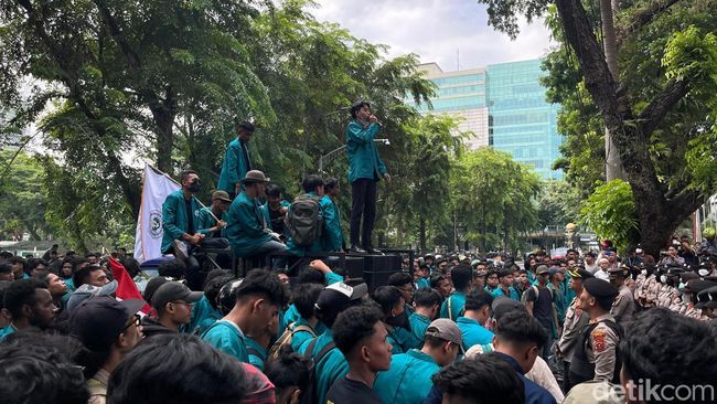 "Kami ingin menyampaikan aspirasi kami, yang mana para wakil rakyat, tolong dengarkan aspirasi kami. Pertama segera sahkan RUU Perampasan Aset, jangan biarkan koruptor menari-nari di sana, sedangkan rakyat tertindas," kata orator dari atas mobil komando.