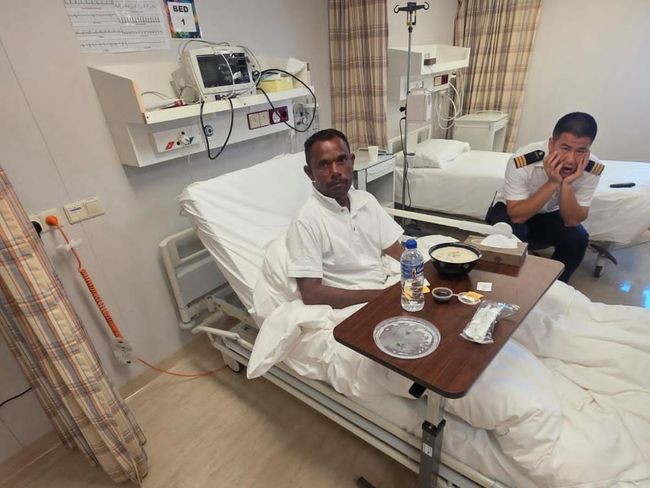 Rusli telah mendapatkan perawatan di dalam kapal pesiar. Di dalam foto yang beredar, Rusli duduk di ranjang tempatnya dirawat didampingi awak kapal.