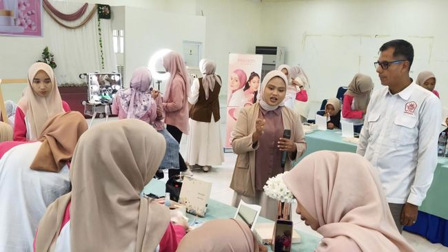 Puluhan Peserta itu tampak begitu antusias mengikuti setiap sesi pelatihan yang langsung dimentori oleh dua orang instruktur dari Wardah beauty Pekanbaru, Widia dan Dika.