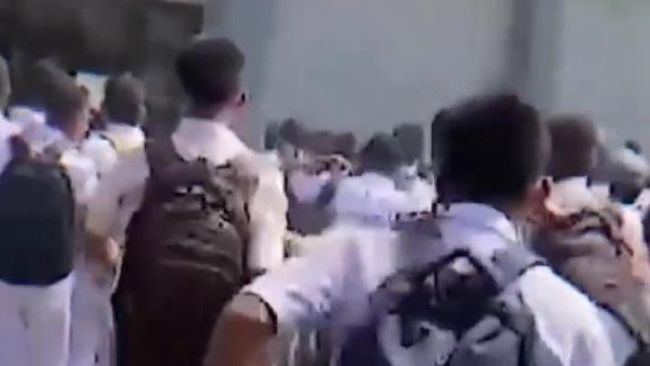 Dalam video itu juga terlihat sejumlah guru di sekitar siswa yang demo. Para siswa kemudian terlihat mencoba masuk ke dalam sebuah bangunan di sekolah itu.