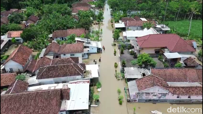 Jakarta - Hujan deras yang mengguyur Lumajang, Jawa Timur membuat Sungai Banter meluap. Akibatnya empat ratus rumah di Desa Sidorejo, Kecamatan Rowokangkung, terendam banjir. Ketinggian air mulai dari 50 sampai 90 sentimeter.
