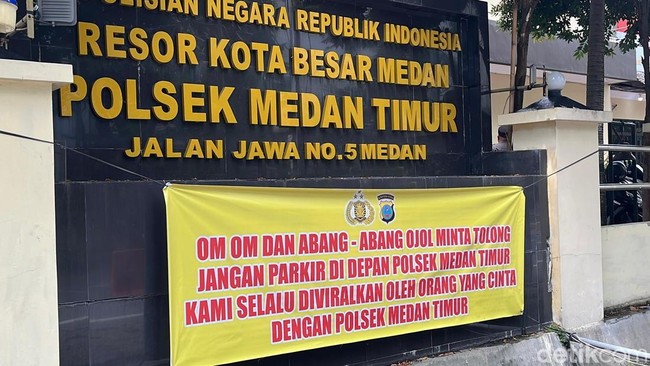 Berdasarkan pantauan detikSumut, Kamis (20/11/2025), spanduk itu terpasang di depan Polsek Medan Timur Jalan Jawa, Kota Medan. Spanduk itu bertuliskan 'Om om dan abang-abang ojol minta tolong jangan parkir di depan Polsek Medan Timur. Kami selalu diviralkan oleh orang yang cinta dengan Polsek Medan Timur'.