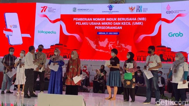 "Kita minta DPMPTSP segera menyasar UMKM yang belum ada izinnya, kita bantu agar punya NIB agar mereka punya akses perbankan," ungkap Bahlil saat konferensi pers di acara pembagian NIB kepada pelaku UMKM di Gelanggang USU, Medan, Kamis (21/7/2022).