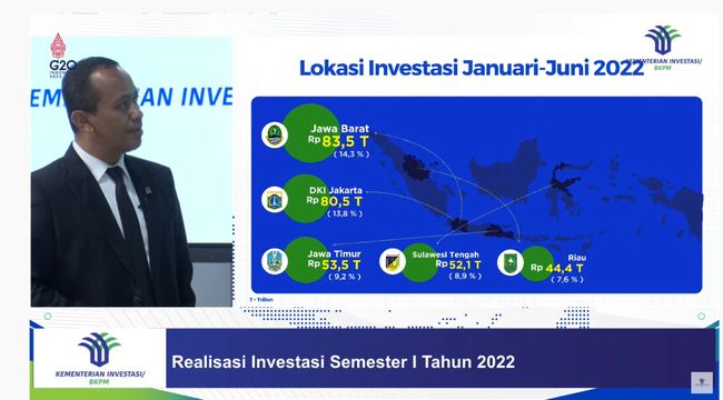 Adapun lima lokasi investasi tertinggi yakni peringkat pertama tertinggi berada di Provinsi Jawa Barat dengan nilai Rp 83,5 triliun. Selanjutnya disusul oleh DKI Jakarta sebesar Rp 80,5 triliun, Jawa Timur Rp 53,5 triliun, Sulawesi Tengah Rp 52,1 triliun dan selanjutnya Provinsi Riau dengan nilai Rp 44,4 triliun.(ADV/ADV)