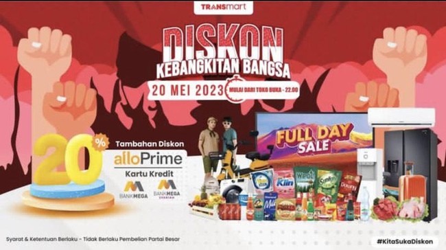 Transmart mengadakan Full Day Sale besok, Kamis (19/5/2023). Program promo belanja ini berlaku untuk seluruh Transmart se-Indonesia, tak terkecuali Kota Medan.