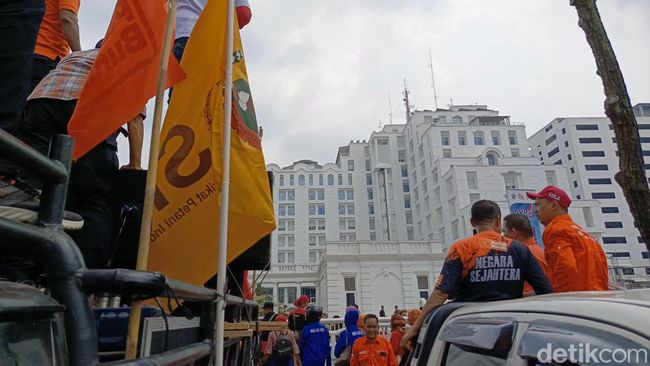"Kami melakukan aksi ini gelombang aksi yang ke-9, kemarin kita aksi di depan MK. Hanya satu tuntutannya, yaitu meminta pemerintah dan dan DPR mencabut Omnibus Law Cipta Kerja," kata Said Iqbal, Kamis (22/6/2023).