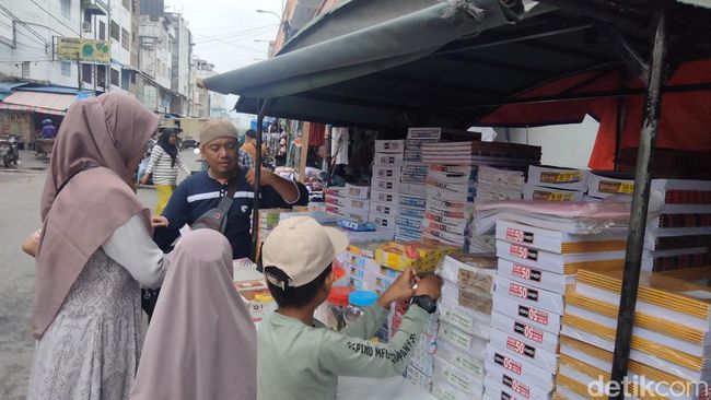 "Sudah ada lebih lima belas tahun (jadi pedagang buku musiman) jualan di sini. Karena kebutuhan alat-alat tulis ini kan memang dicari. Kalau sekarang lagi ramai-ramainya karena tiga hari lagi anak sekolah masuk," kata Indra Kusuma Siregar pedagang buku musiman yang ditemui detikSumut.