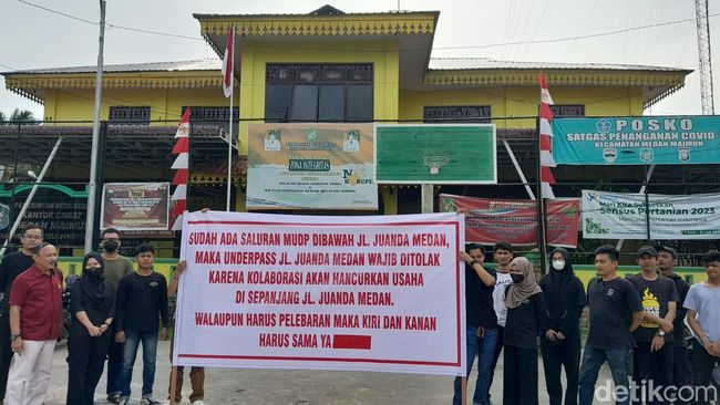 Pantauan detikSumut, Selasa (18/7/2023), mereka terlihat melakukan demonstrasi di depan Kantor Camat Medan Maimun. Sejumlah pekerja kafe tersebut terlihat memang spanduk yang berisikan penolakan pembangunan underpass.
