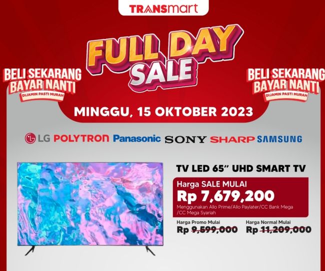 Transmart menawarkan promo produk elektronik murah saat Full Day Sale. Detikers dapat berburu produknya di Transmart se-Indonesia hanya hari ini.