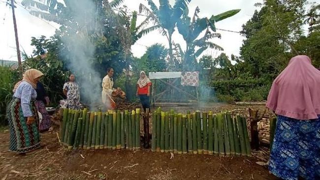 - Persiapan Bahan: Warga bergotong royong mencari bambu, menyiapkan beras ketan, santan, dan daun pisang.