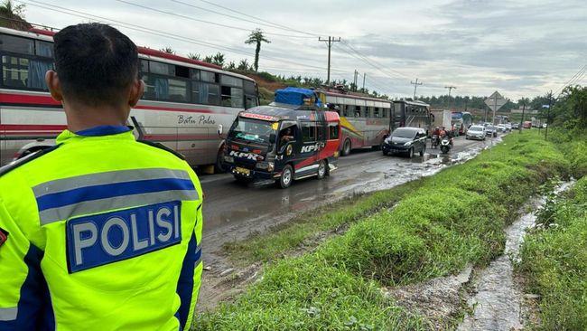 "Di daerah Pulo Maria ada luapan air karena hujan tadi malam. Karena kondisi jalan itu ada cekungan jadi timbul genangan di sana. Di tambah lagi di titik yang sama ada truk barang yang mogok karena patah as roda," kata Kasatlantas.