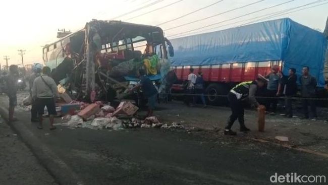Asahan - Bus PMH terlibat kecelakaan dengan truk di Jalinsum Asahan, Kamis (21/7) pagi. Begini kondisi terkini bus tersebut.