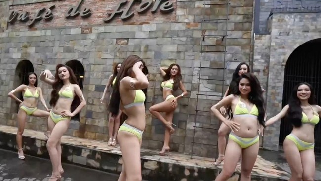 Sejumlah finalis Miss Grand Vietnam berpose dengan bikini. Terlihat perut buncit salah satu peserta. Meski berbeda dari yang lain, dia tetap percaya diri. (Foto: Dok. Miss Grand Vietnam Facebook)