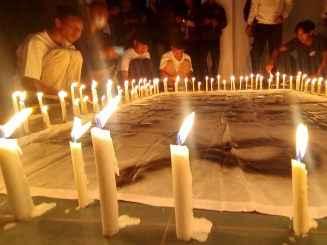 Aksi Bakar Lilin dan Doa Bersama Suporter Sepak Bola di Lampung
