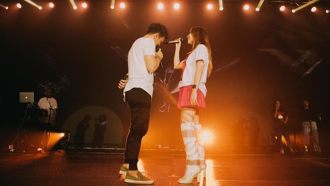 BCL saat bernyanyi bersama Ariel NOAH dalam sebuah kesempatan. Bunga tidak membantah dia dekat dengan Ariel. (Foto: Istimewa)