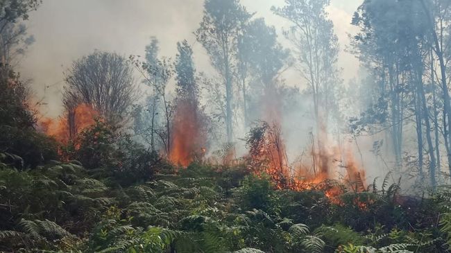 Natuna - 100 hektare hutan di Natuna, Kepri terbakar. BPBD Natuna pun kesulitan melakukan pemadaman api akibat adanya angin kencang.