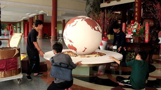 Persiapan menjelang perayaan Tahun Baru Imlek ke 2574 di Maha Vihara Maitreya yang terletak di Jalan Cemara Asri Boulevard Raya, Kota Medan. Foto: Farid Achyadi Siregar/detikSumut