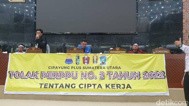 Potret Aksi Mahasiswa Tolak Perppu Cipta Kerja Duduki DPRD Sumut