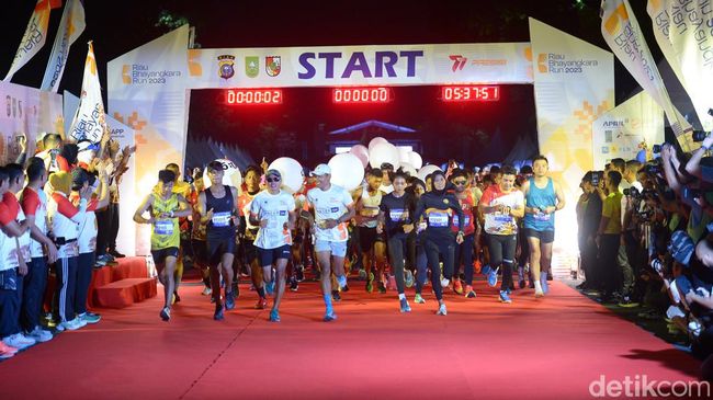 Riau Bhayangkara Run start pada pukul 05.00 WIB. Ratusan peserta dari berbagai daerah turut meramaikan event ini. (Foto: Raja Adil Siregar/detikSumut)